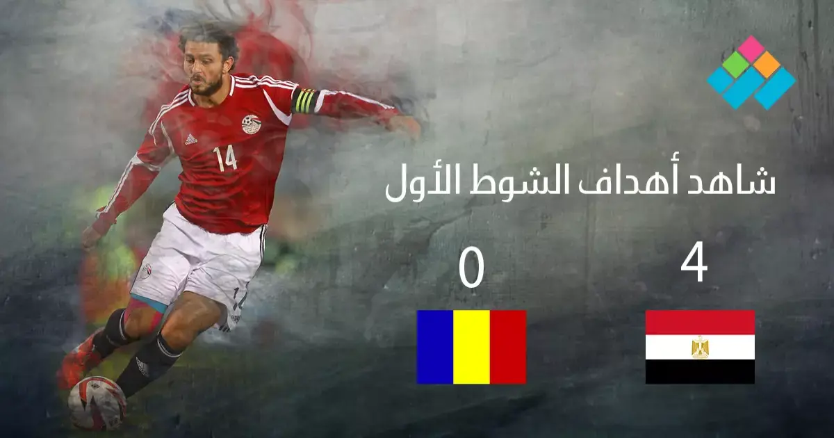 تقدم منتخب مصر على تشاد في الشوط الأول من المباراة التي أقيمت على ستاد برج العرب في تصفيات كأس العالم، بـ 4 أهداف نظيفة، حملت توقيع محمد النني، وعبد الله السعيد، وأحمد حسن كوكا (هدفين).