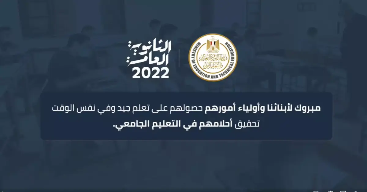 وأعلنت وزارة التربية والتعليم والتعليم الفني أن عدد الناجحين في الثانوية العامة 2022 بالتحديد 457062 طالب وطالبة من أصل 609091 حضروا الاختبارات، وبنسبة نجاح 75.04%.