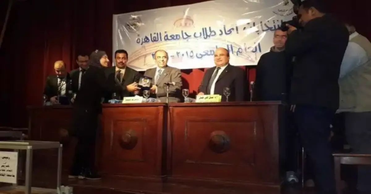 كرمت جامعة القاهرة، اليوم الأحد، مجلس اتحاد الجامعة السابق، الذي كان يرأسه هشام أشرف، وينوبه مصطفى سعد، أثناء إجراء انتخابات اتحاد المجلس الجديد لعام 2015-2016.