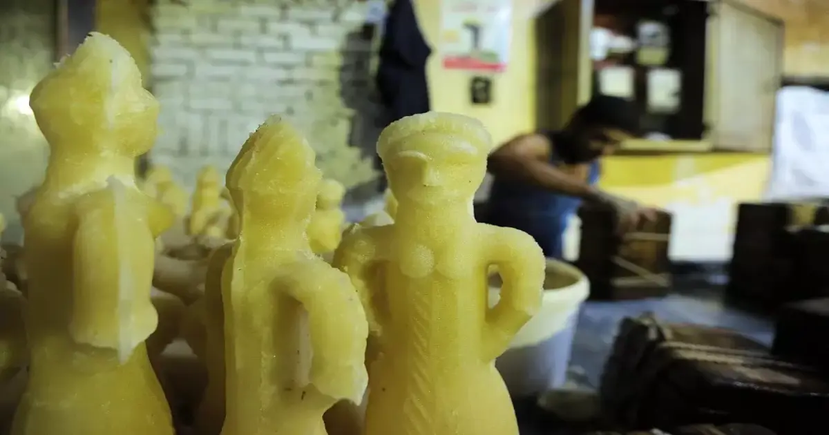 ويظهر في الصور العمال وهم يشكّلون الحلوى المعروفة باسم عروسة المولد، وبينها صورة لأشكال من عروسة المولد تشبه كثيرا التصورات الموضوعة عن الأصنام التي عبدها أهل قريش قبل الدعوة الإسلامية.