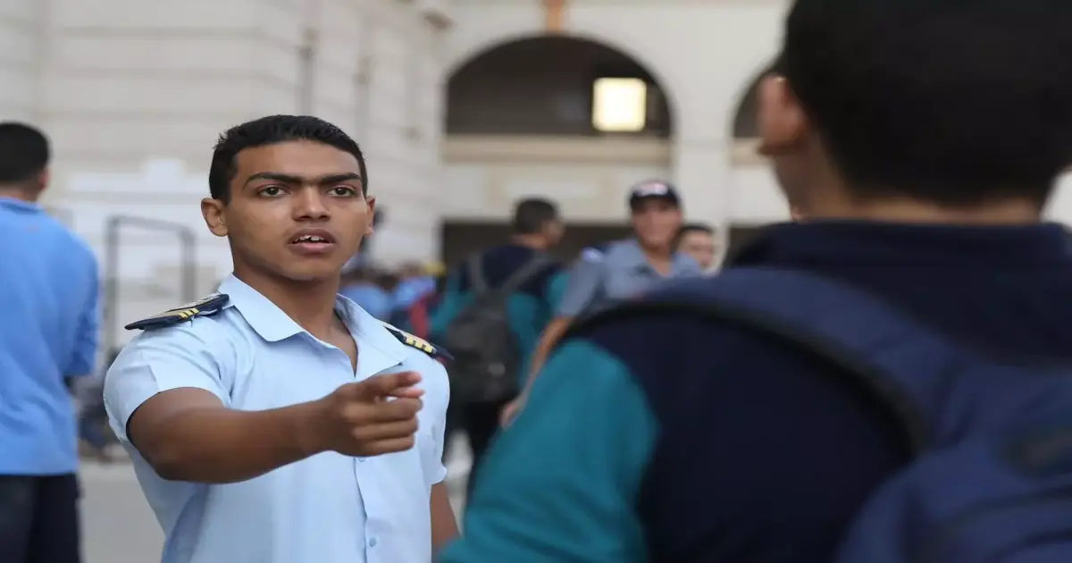 أثارت الصور الملتقطة للطلاب القائمين بمهام الشرطة المدرسية بمدرسة السعيدية الثانوية العسكرية بنين سخرية رواد مواقع التواصل الاجتماعي، رغم الجدية الشديدة التي ظهر عليها الطلاب أثناء تأدية الدور المنوط بهم.