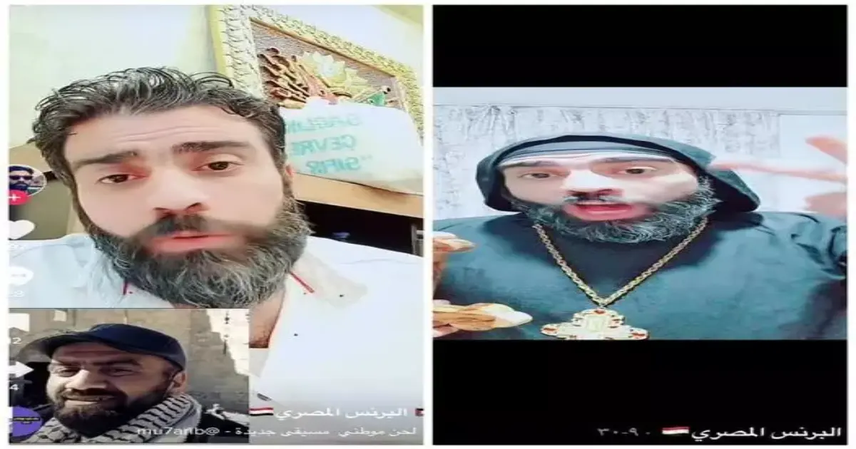 وأضاف: «رسالة إلي النائب العام.. الشخص ده عامل أكونت على التيك توك باسم البرنس المصري.. وبيصور فيديوهات وهو لابس ملابس كهنوتية ومعلق الصليب وراه بالمقلوب وماسك في إيديه صليب برضه بالمقلوب.. بيهين المسيحية ورموزها المقدسة إهانة واضحة بالألفاظ والحركات والقول والفعل.. باسمي وباسم كل أقباط مصر بنطالب بسرعة القبض عليه ومحاكمته منعًا لإثارة الفتنة وتكدير السلم العام، ياريت كل اللي يشوف البوست ده يعمل شير علي صفحته أو كوبي.. علشان الرسالة توصل بشكل جماعي».