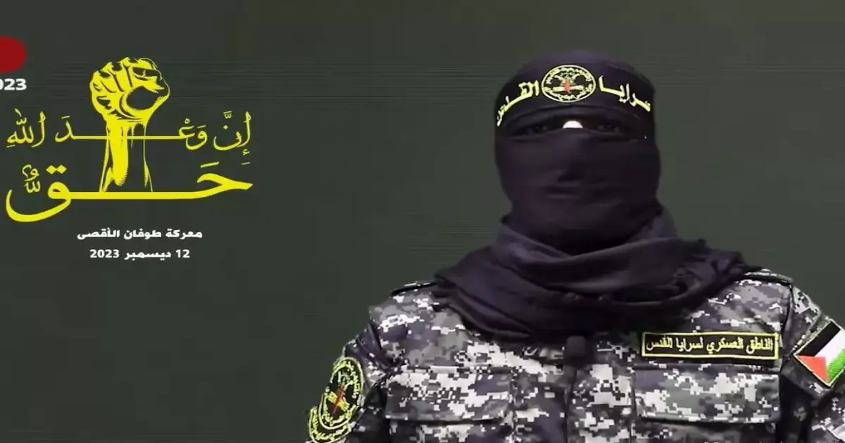 نشرت كتائب سرايا القدس، الجناح العسكري لحركة الجهاد الإسلامي، بيانا مصورا للناطق باسمها، أبو حمزة، مساء اليوم الثلاثاء، 12 ديسمبر 2023.