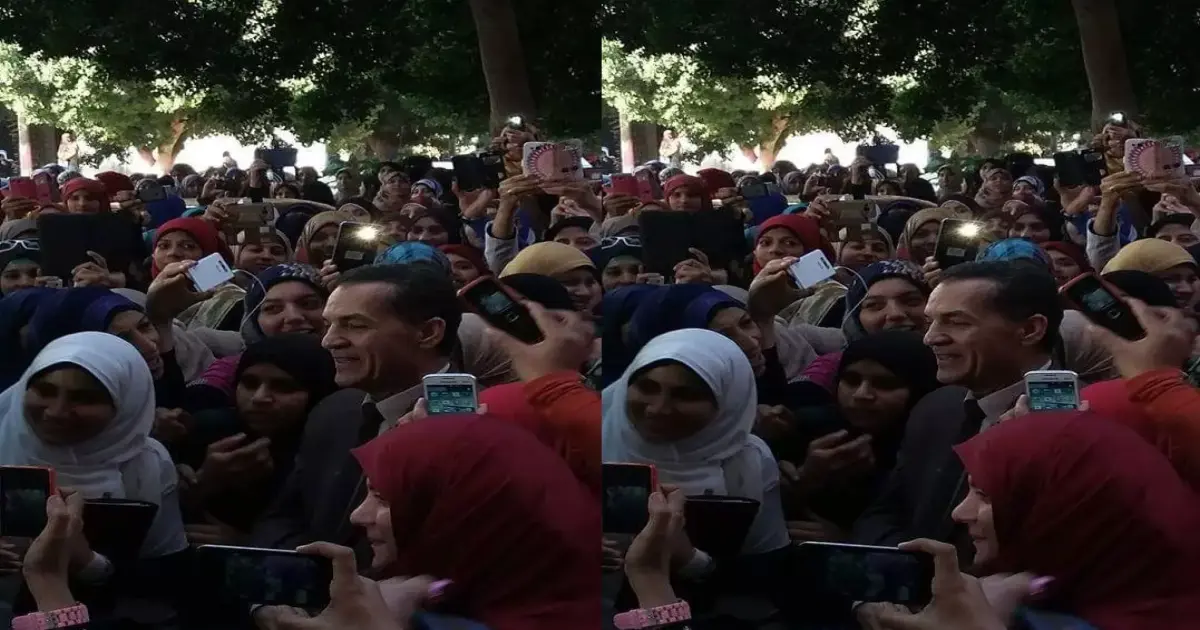على خطى السيسي.. «عزب» يلتقط سيلفي مع طالبات الأزهر