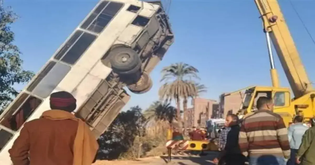 فيديو حادث انقلاب أتوبيس عمال مصنع السكر في جرجا.. تفاصيل الواقعة