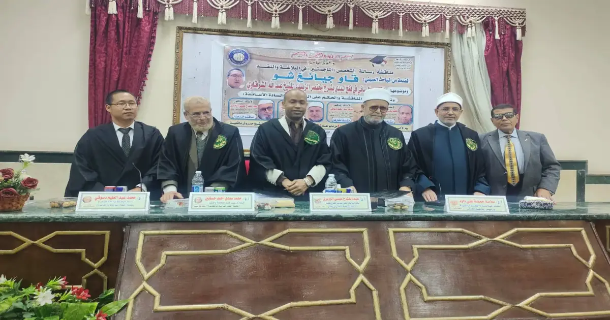 حصل الباحث الصيني «قاو جيانج شو»، على الدرجة العلمية «الماجستير» في البلاغة والنقد بكلية اللغة العربية في جامعة الأزهر، وناقشه فيها رئيس الجامعة الحالي سلامة داوود.
