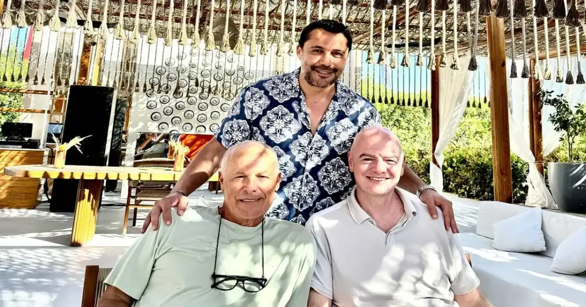 ونشر أحمد حسن، الملقب بعميد لاعبي العالم، صورا جمعته بإنفانتينو في أحد منتجعات الساحل الشمالي، وعلق عليها قائلا: مستر إنفانتينو، مرحبا بك في ساحل مصر الشمالي، أجمل شواطئ العالم. يسرني وجودك معنا.