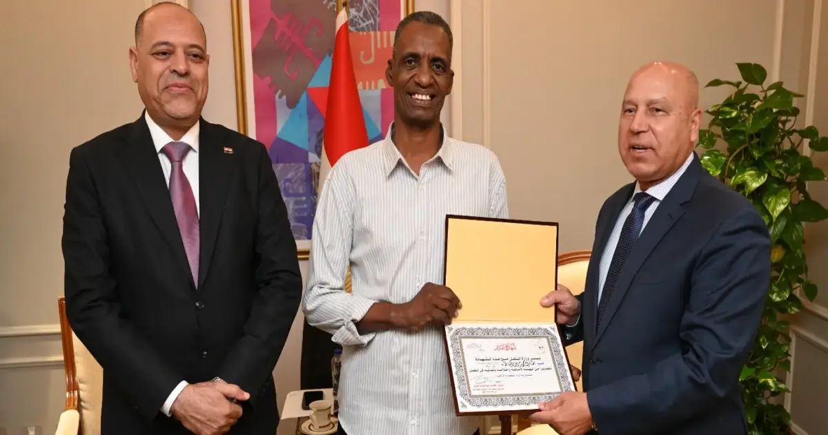 كرم نائب رئيس مجلس الوزراء للتنمية الصناعية وزير الصناعة والنقل، الفريق مهندس كامل الوزير، ووزير العمل محمد جبران، اليوم الثلاثاء، بمقر الوزارة، عامل مزلقان كوبري السادات بمحافظة بني سويف، طارق محمد برس، تقديرًا لشجاعته وإقدامه على إنقاذ شاب من الموت تحت عجلات القطار رقم 2011، يوم الجمعة الماضية.
