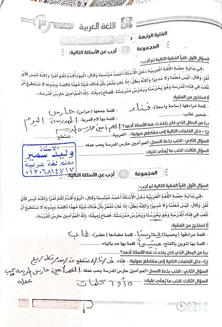 يحتوي حل الأداء الصفي عربي ثالثة ابتدائي الأسبوع الثالث ترم أول 2026 على عدد كبير من الأسئلة، والأنشطة، والتي أجاب عنها المدرسون، ومن بينها كان الآتي: