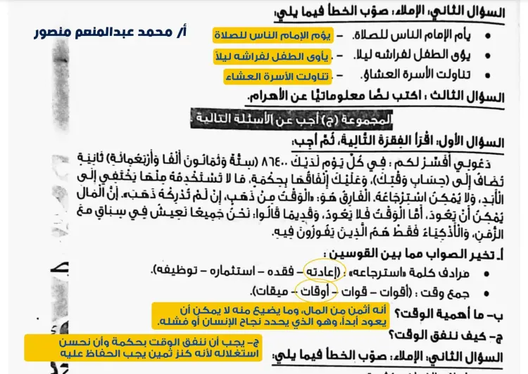 السؤال: صوّب الكلمات الخطأ فيما يأتي.