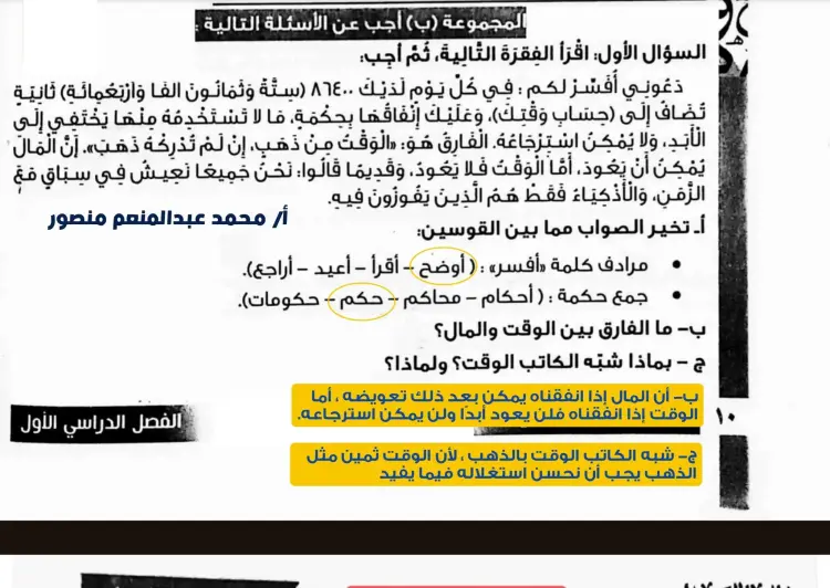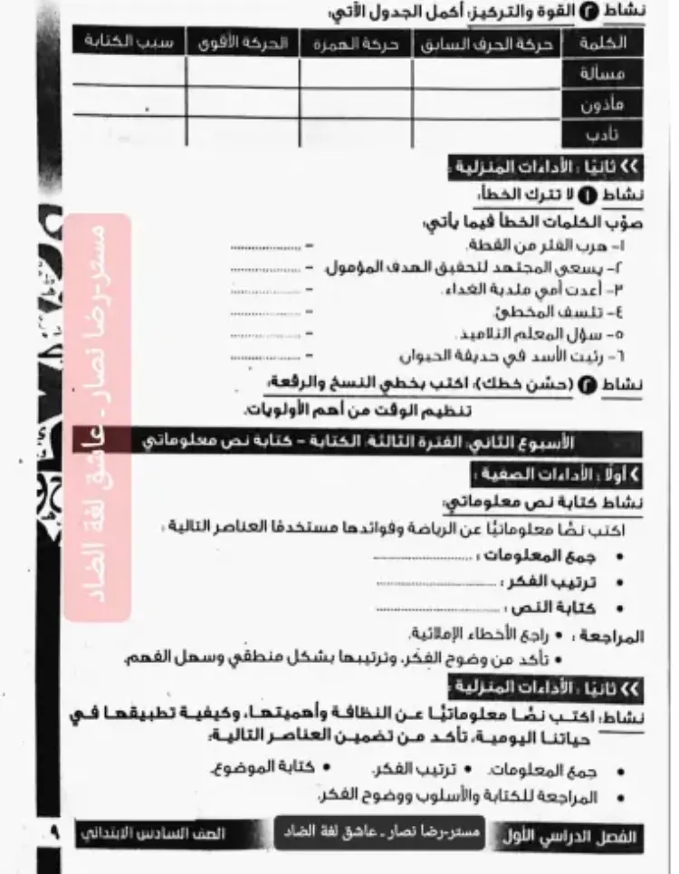 حل الأداء الصفي وواجب وتقييم الأسبوع الثاني عربي للصف السادس الابتدائي ترم أول 2026