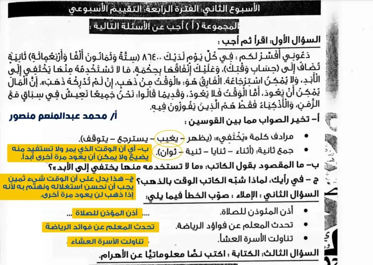 يقدم موقع «شبابيك» حل الأداء الصفي وواجب الأسبوع الثاني عربي للصف السادس الابتدائي ترم أول 2026، والذي كان الأسئلة والإجابات كالتالي: