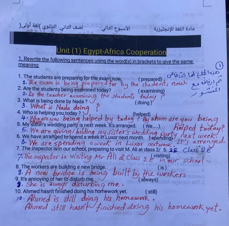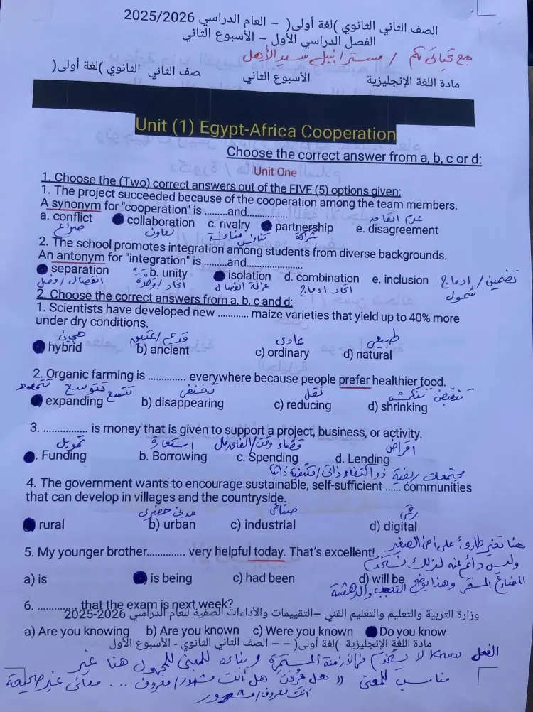 ولتكملة الإجابات وحل الأداء الصفي وواجب وتقييم الأسبوع الثاني إنجليزي للصف الثاني الثانوي ترم أول 2026 يمكنك من خلال الصور التالية: