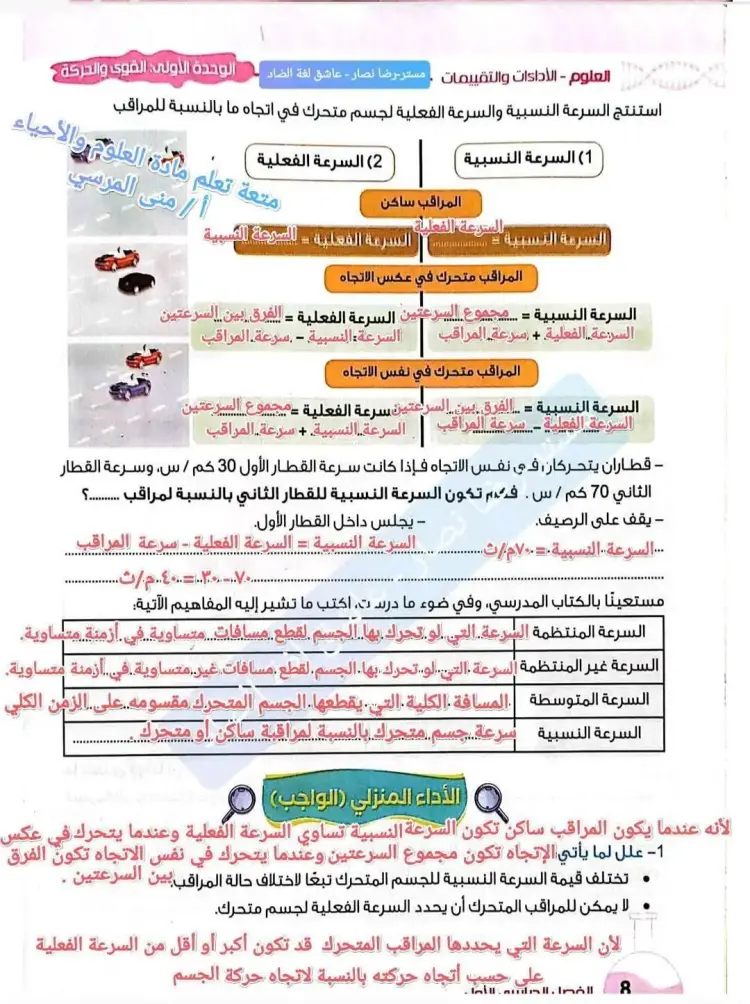 • سرعة جسم متحرك بالنسبة لمراقب ساكن أو متحرك تعرف بـ...... السرعة النسبية.