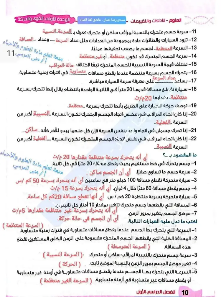 1- سيارة تتحرك بسرعة منتظمة مقدارها 20 م/ث؟