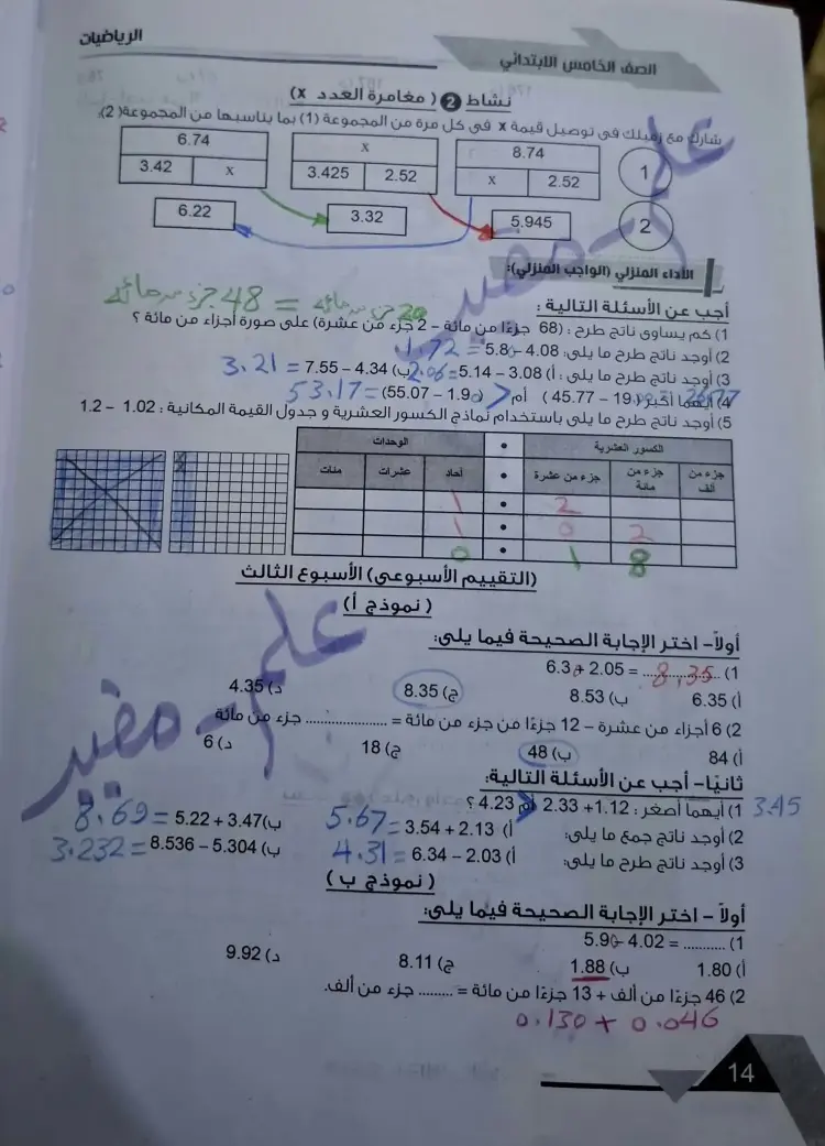 السؤال: أوجد ناتج جمع ما يلي: 5.22 + 3.47 (صورة 14)