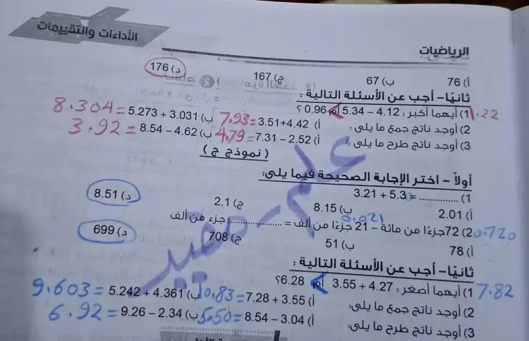 السؤال: أيهما أصغر: 4.27 + 3.55 أم 6.28 ؟ (صورة 15)