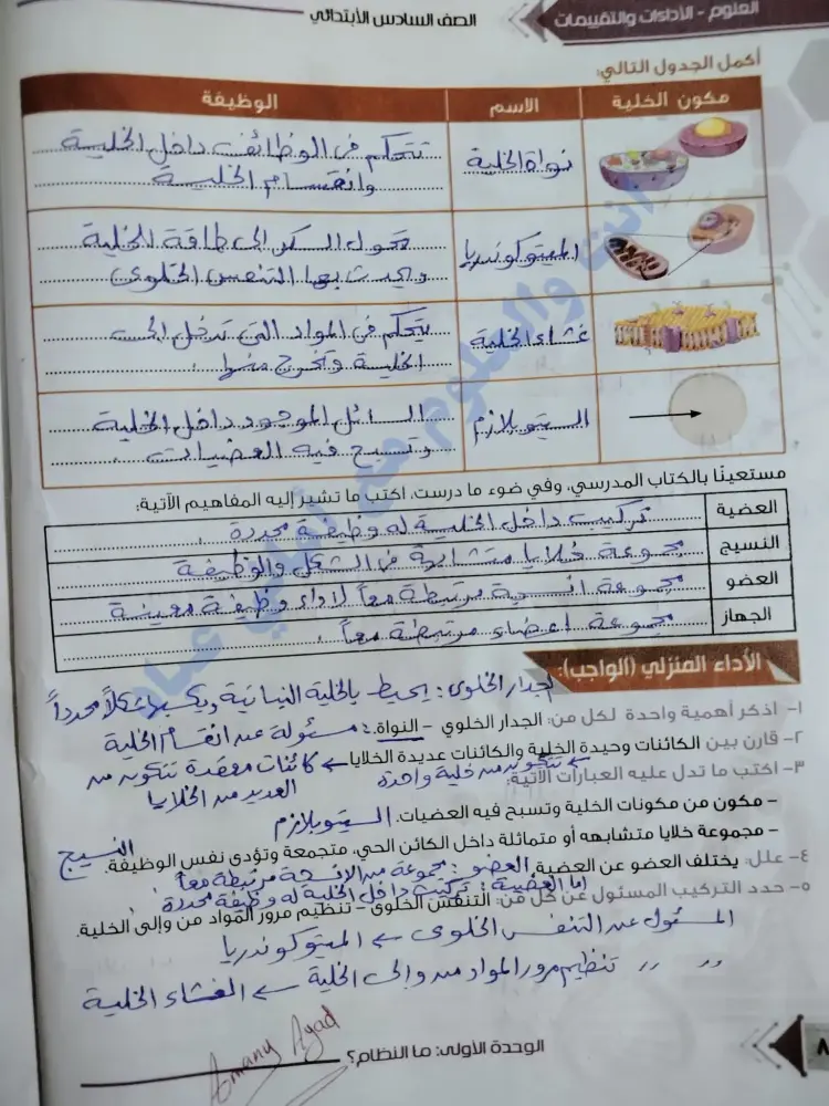 حل الأداء الصفي وواجب وتقييم الأسبوع الثاني علوم للصف السادس الابتدائي 2026