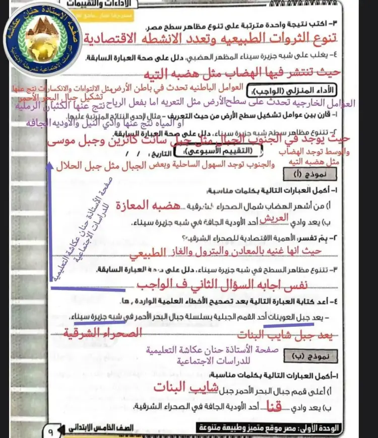 يجيب المدرسين عن حل الواجب المنزلي دراسات خامسة ابتدائي ترم أول 2026 ومن بين الإجابات كان الآتي:​​​