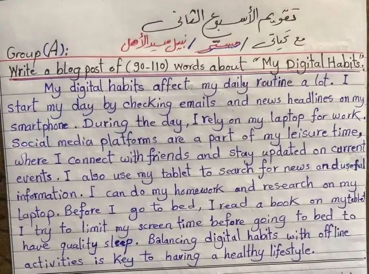 A) Write a blog post of (90-110) words about -My Digital Habits