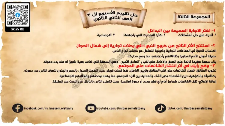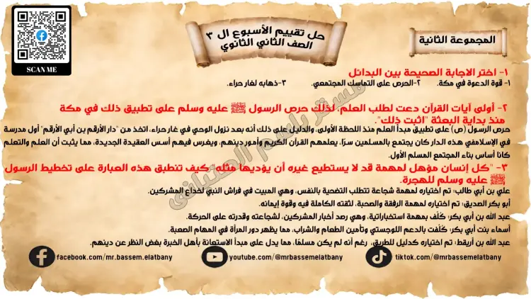 نتطرق في السطور التالية إلى حل تقييمات الأسبوع الثالث تاريخ تانية ثانوي الترم الأول 2026، لتتأكد من الإجابة الصحيحة.