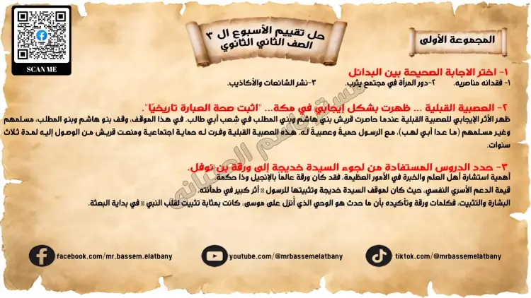 حل تقييمات الأسبوع الثالث تاريخ تانية ثانوي الترم الأول 2026