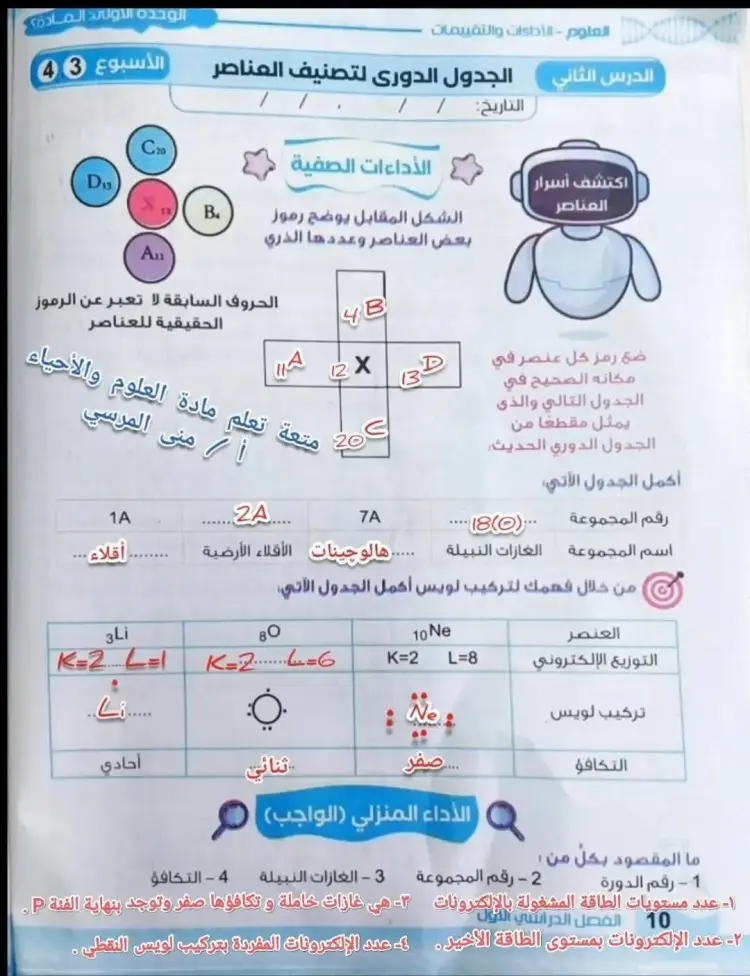 حل الأداء الصفي والواجب المنزلي والتقييم الأسبوعي الثالث والرابع علوم للصف الأول الإعدادي 2026