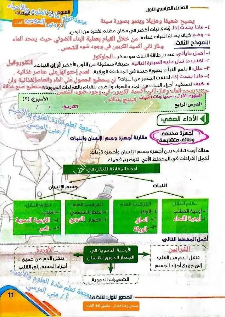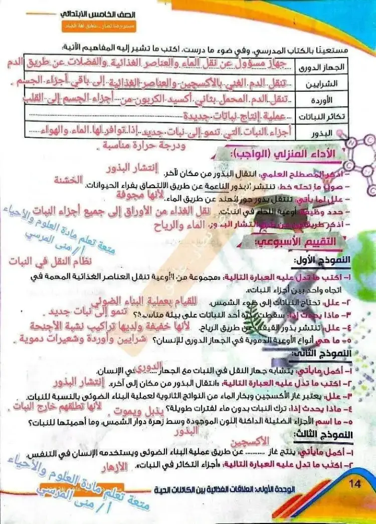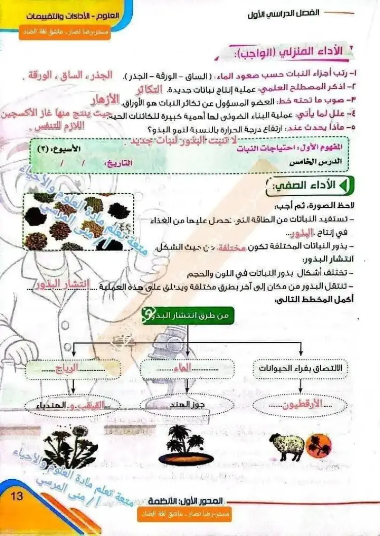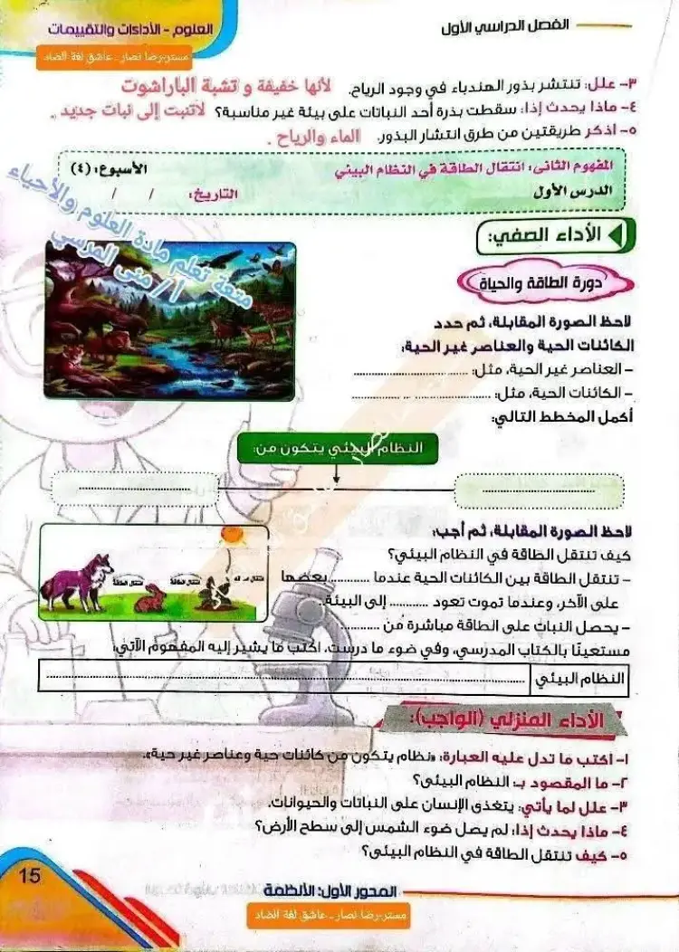 حل الأداء الصفي وواجب وتقييم الأسبوع الثالث علوم للصف الخامس الابتدائي ترم أول 2026