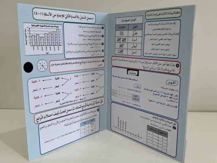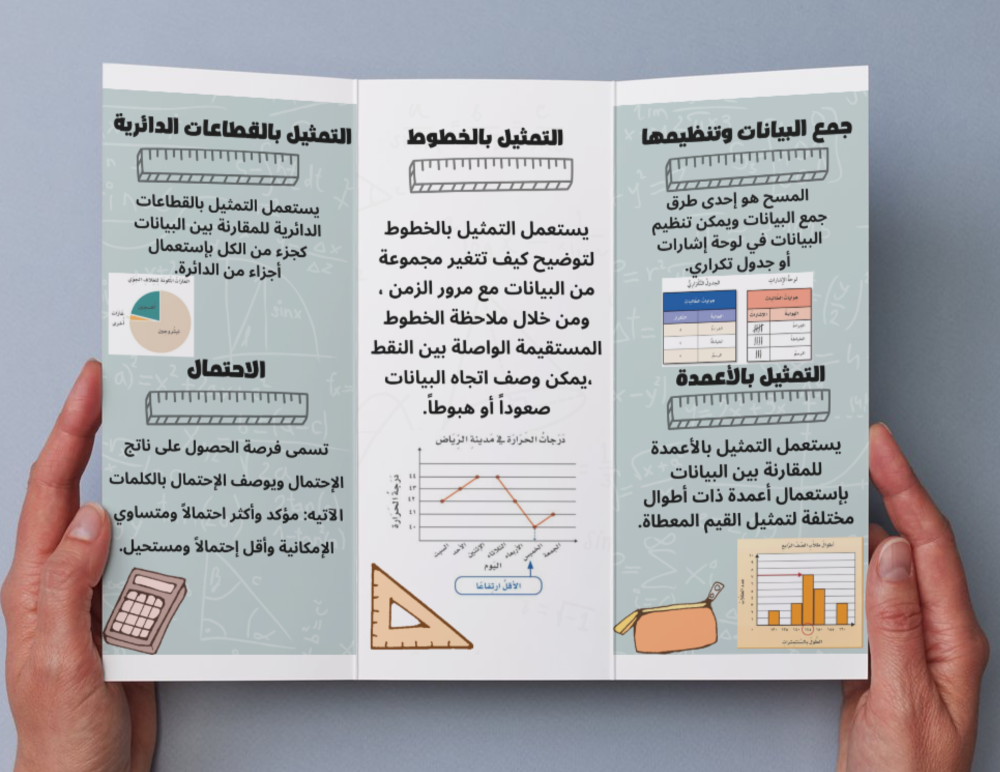 وتساعد المطوية الطالب على فهم كيفية تنظيم البيانات وعرضها وتفسيرها بكل سهولة ويسر.