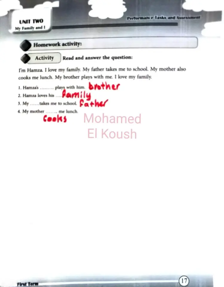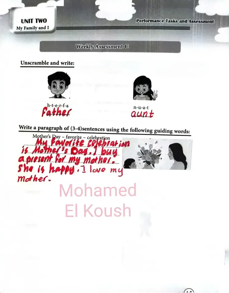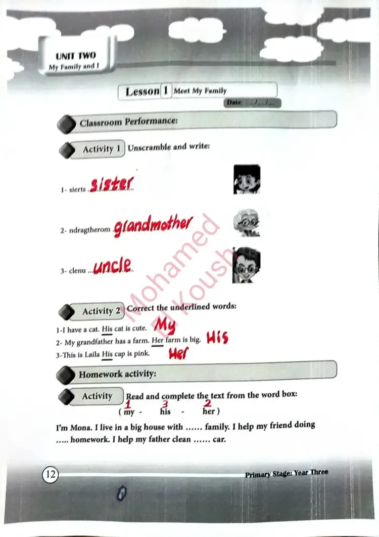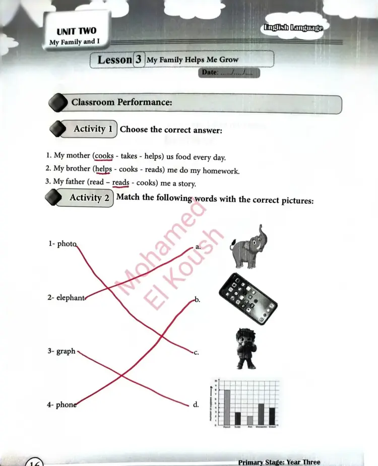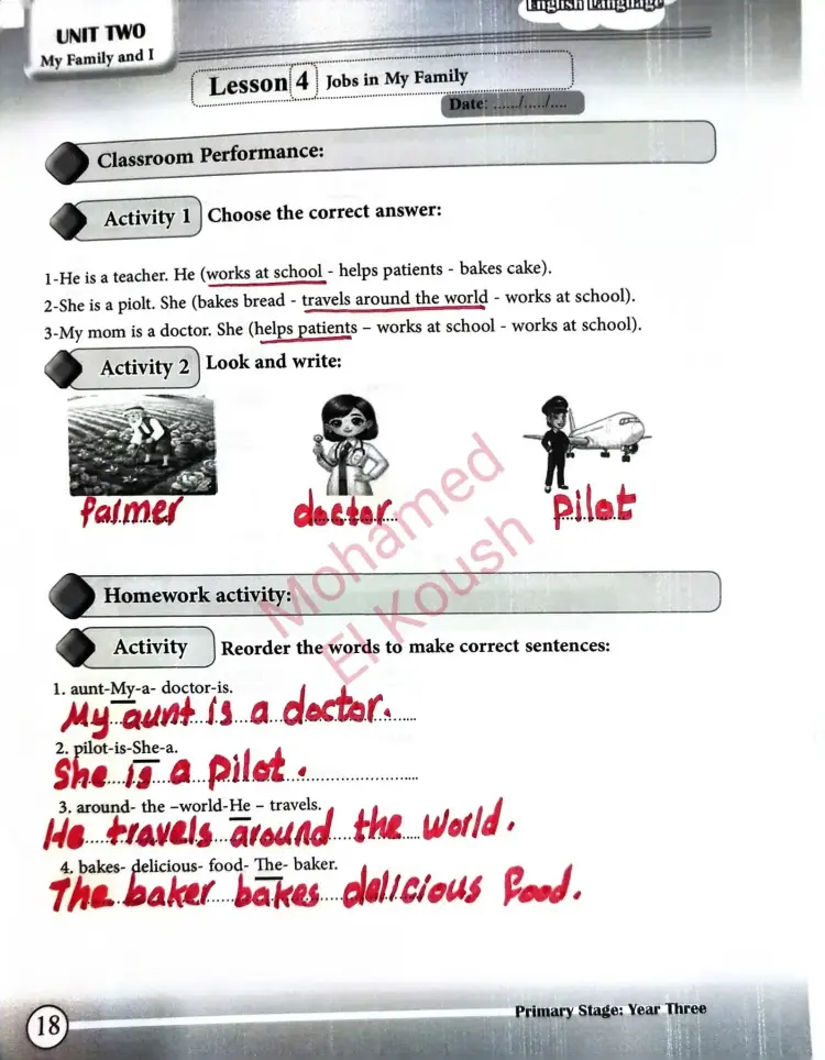 إجابات الأداء الصفي والواجب المنزلي والتقييم الأسبوعي للوحدة الثانية انجليزي تالتة ابتدائي