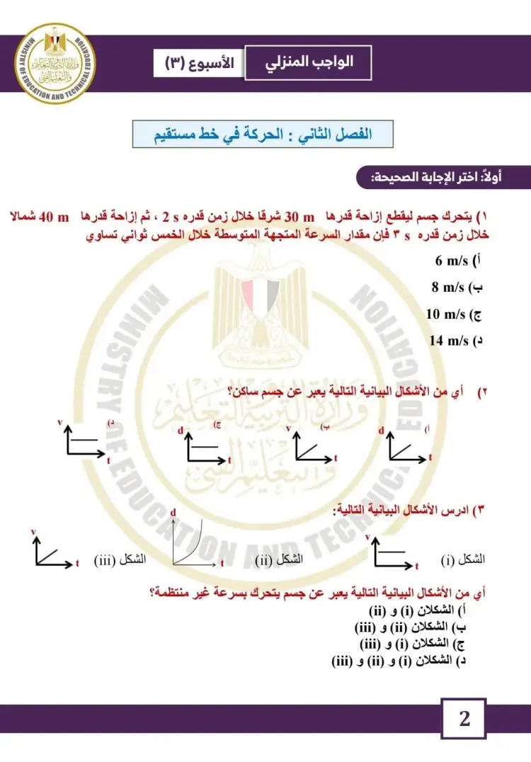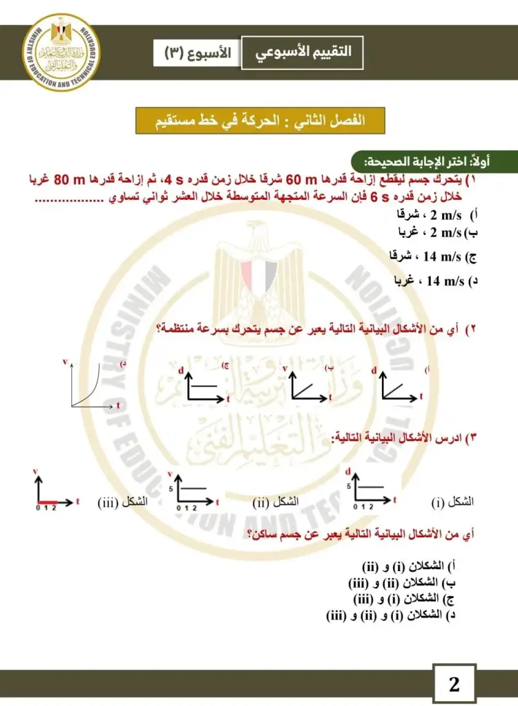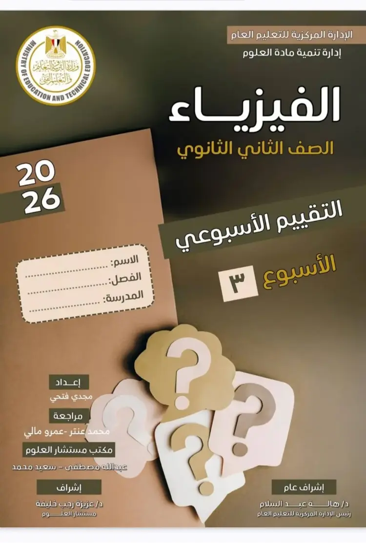 الأداء المنزلي والتقييم الأسبوعي الثالث فيزياء تانية ثانوي ترم أول 2026