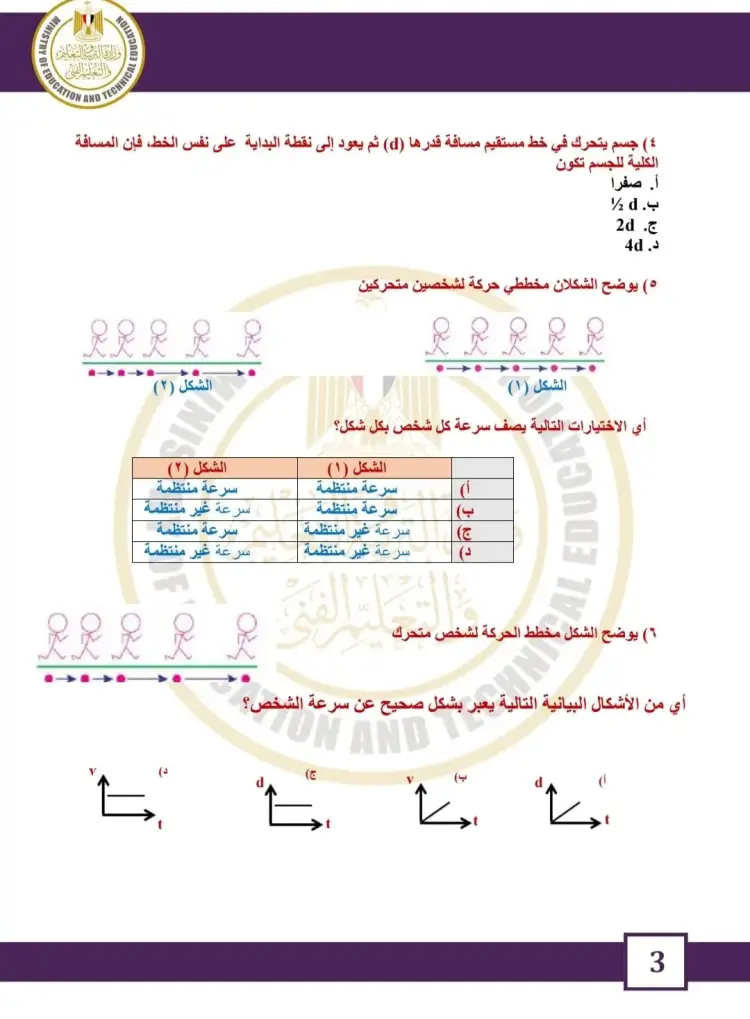 ب) السرعة اللحظية لجسم تساوي 3 m/s؟