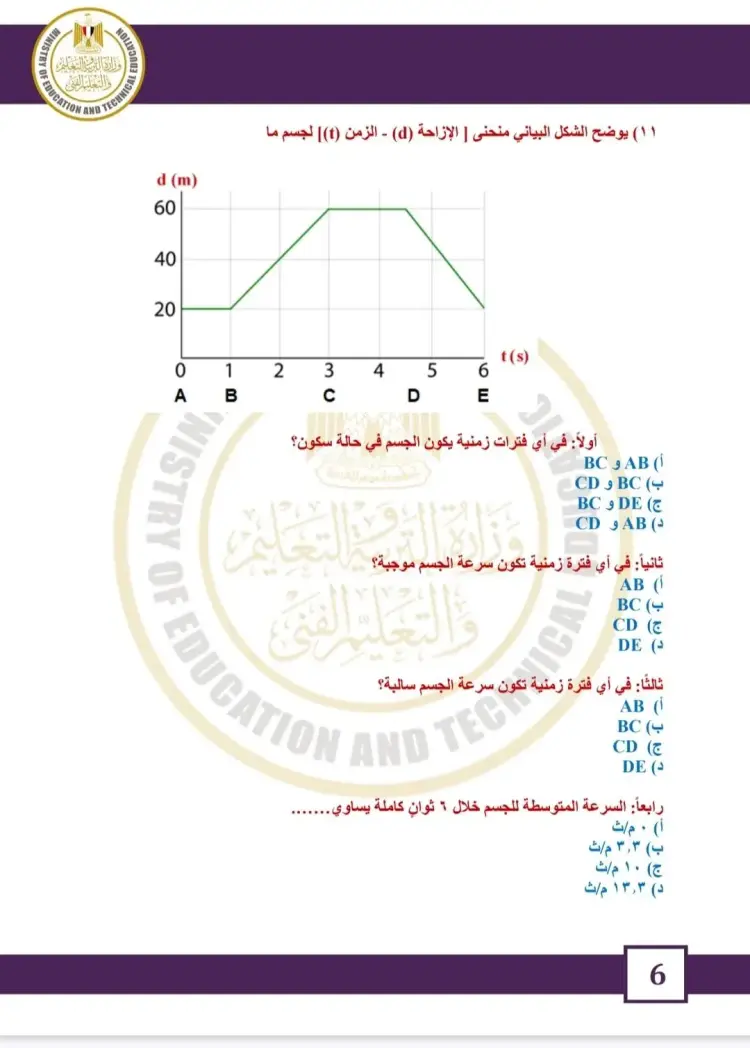 ب) السرعة المتجهة لجسم تساوي 6 m/s؟