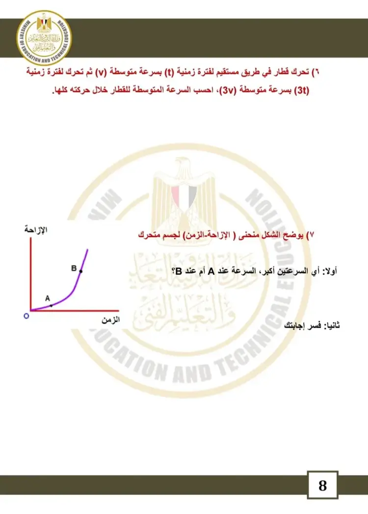 (أولًا) السرعة المتوسطة للجسم من A إلى B تساوي: ......