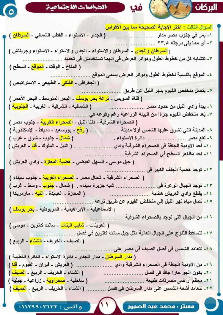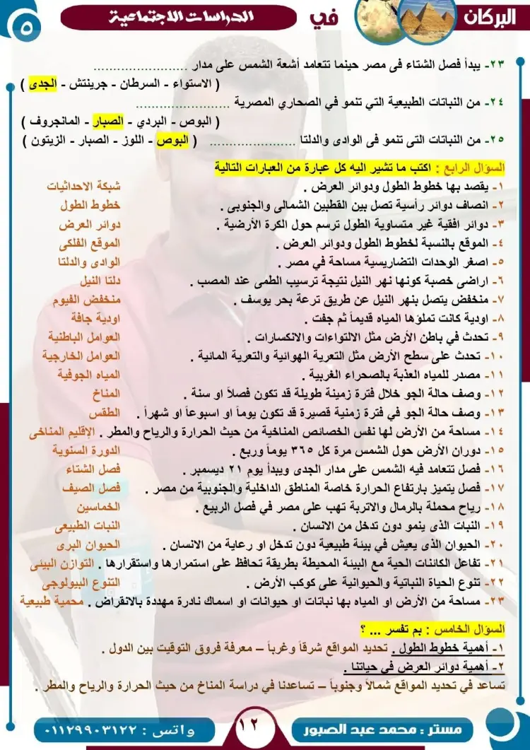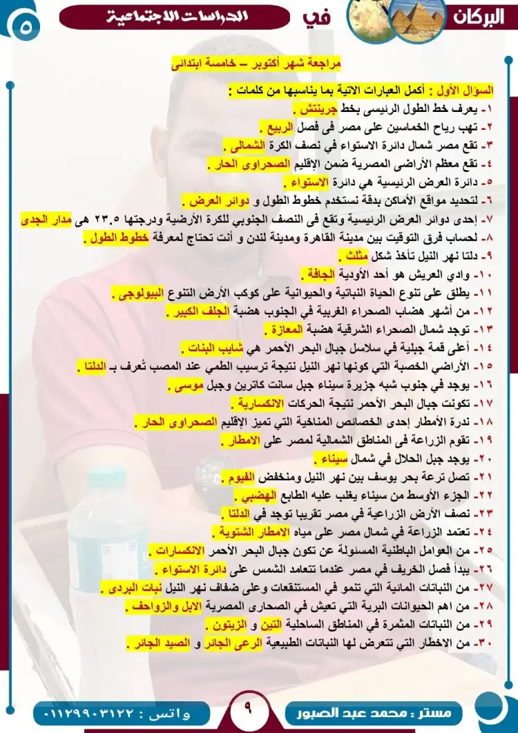 وتعتبر مراجعة شهر أكتوبر دراسات للصف الخامس الابتدائي 2025 2026 من أفضل الطرق التي من خلالها يستعد الطالب للامتحان.
