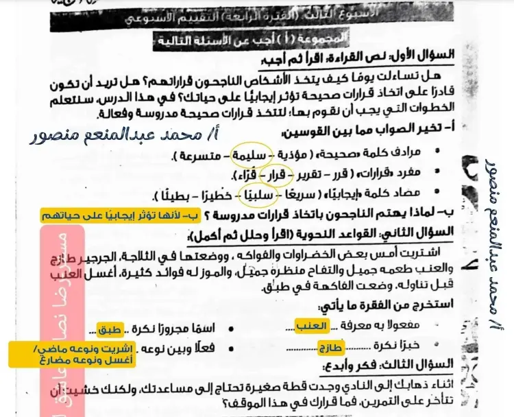 ويتطلع عدد كبير من أولياء الأمور لإطلاع أبناءهم على تلك الأداءات والتقييمات الأسبوعية مرفق بها الحل، لمعرفة الإجابات النموذجية لتلك الأسئلة.