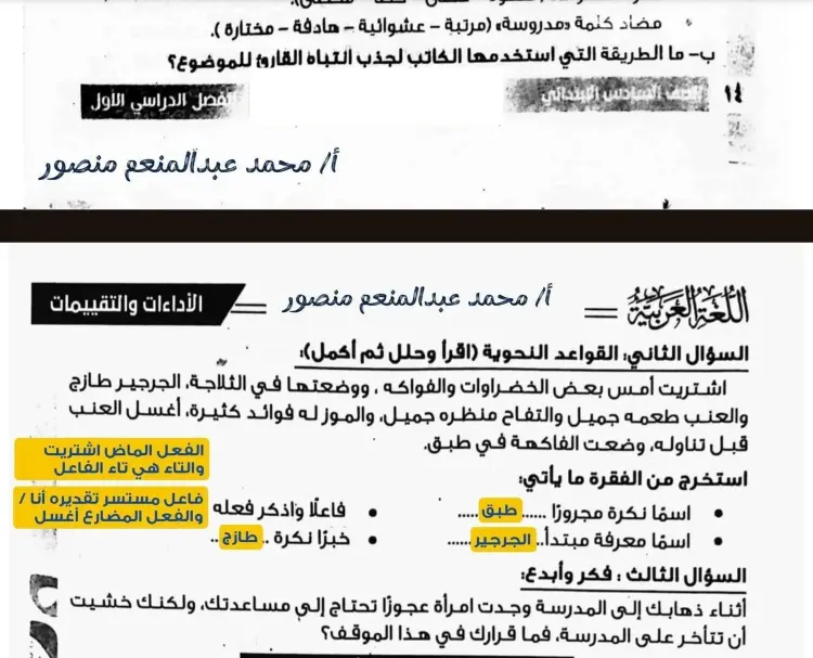 حل تقييمات عربي للصف السادس الابتدائي الأسبوع الثالث الترم الأول 2026