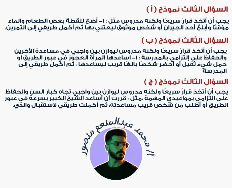 وجاءت الأسئلة مرفق بها الإجابات كما يلي: