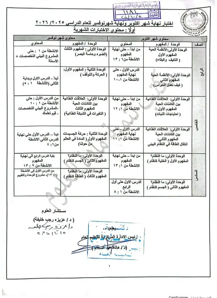 منهج العلوم شهر أكتوبر سادسة ابتدائي 2025 2026
