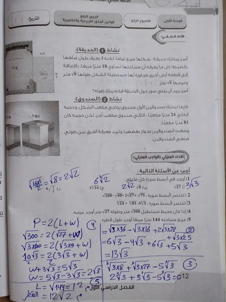 لمتابعة حل الأداء الصفي وواجب وتقييم الأسبوع الرابع رياضيات للصف الثاني الإعدادي ترم أول 2026 يمكنك الإطلاع على الصور التالية: