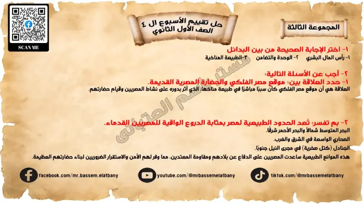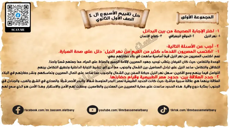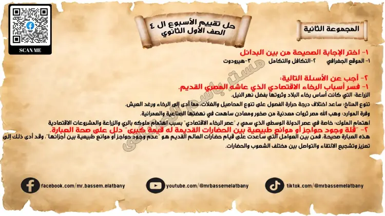 حل تقييمات الأسبوع الرابع تاريخ أولى ثانوي 2025