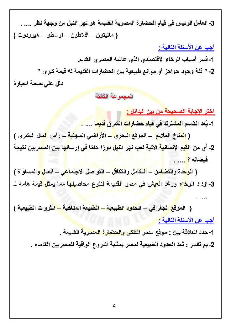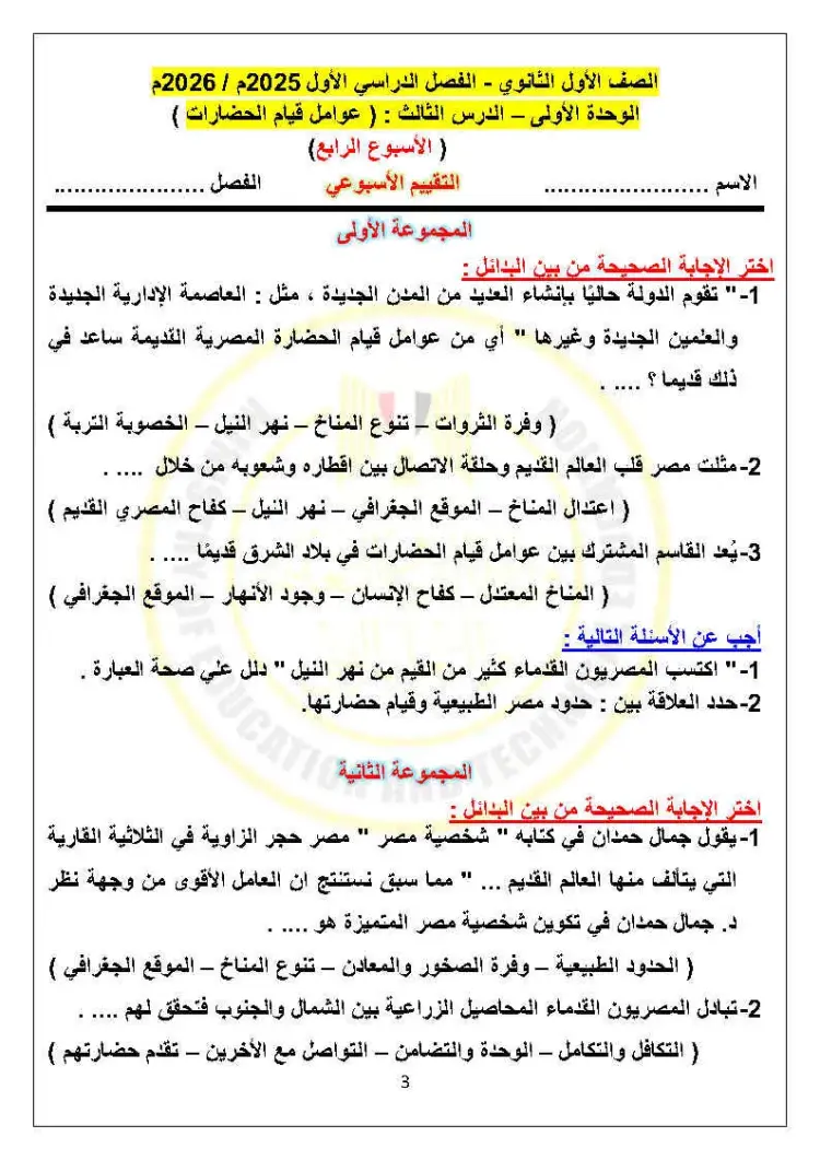 نتطرق في السطور التالية إلى أسئلة تقييمات الأسبوع الرابع تاريخ أولى ثانوي الترم الأول، والتي جاءت على النحو التالي: