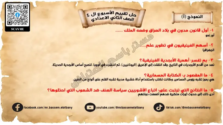 ينشر شبابيك حل الأداء الصفي والواجب المنزلي والتقييم الأسبوعي الرابع دراسات الصف الثاني الإعدادي الترم الأول 2026.