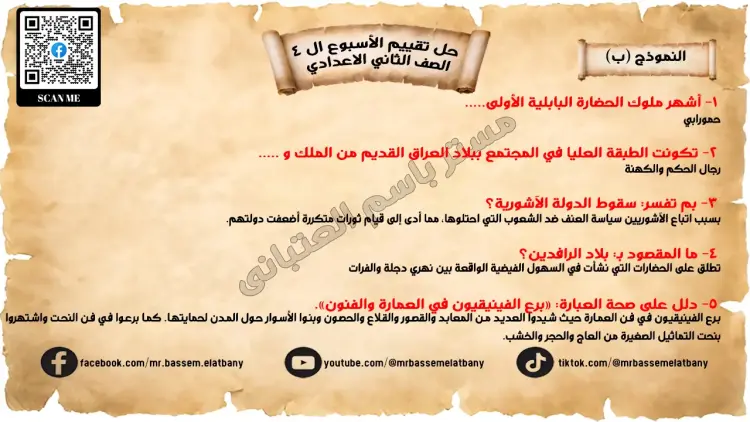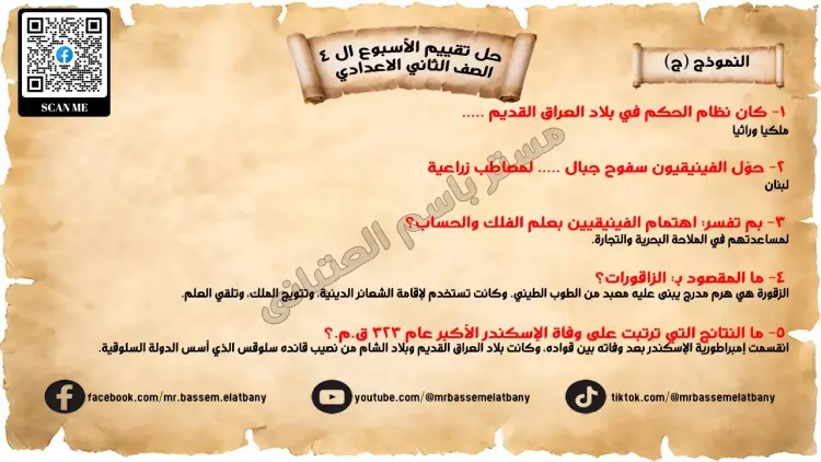 حل الأداء الصفي والواجب المنزلي والتقييم الأسبوعي الرابع دراسات الصف الثاني الإعدادي 2026