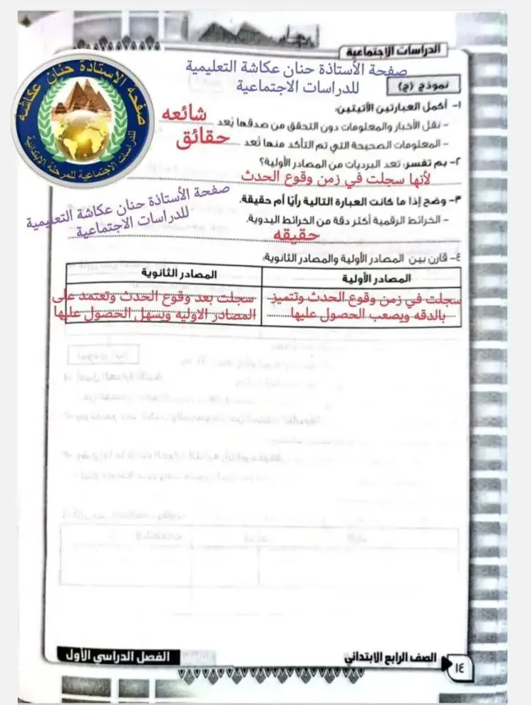 يتوفر في حل الواجب المنزلي دراسات رابعة ابتدائي الأسبوع الرابع ترم أول 2026 عدد من الأسئلة المتنوعة، التي يجيب عنها المدرسون، والتي منها ما يلي: