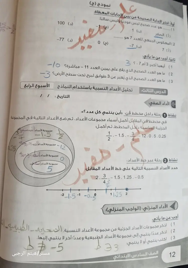 لمتابعة باقي الأسئلة وحل الأداء الصفي وواجب وتقييم الأسبوع الرابع رياضيات الصف السادس الابتدائي ترم أول 2026 يمكنك من خلال متابعة الصور التالية: