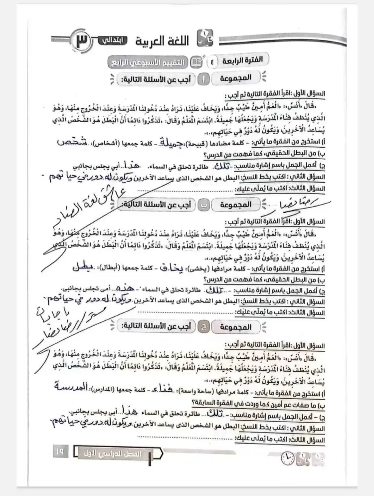 يحتاج الطلاب حل التقييم الأسبوعي عربي ثالثة ابتدائي الأسبوع الرابع ترم أول 2026 لمعرفة الإجابات الصحيحة على جميع الأسئلة، ومن بين الإجابات الصحيحة للأسئلة كان منها: