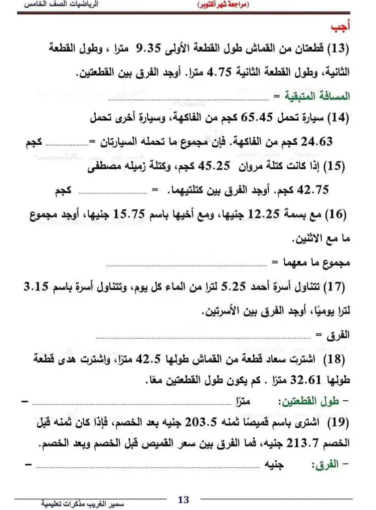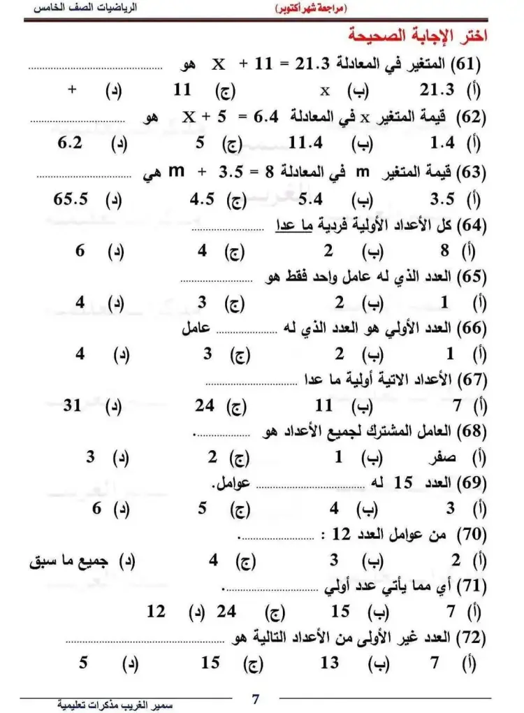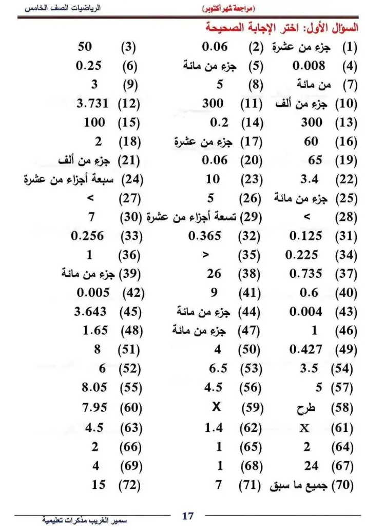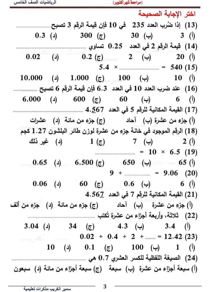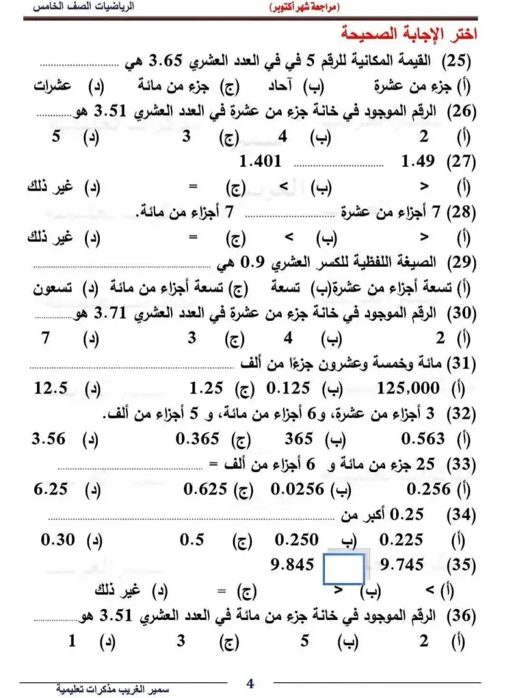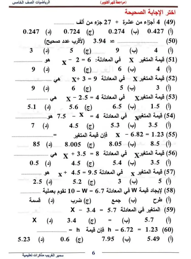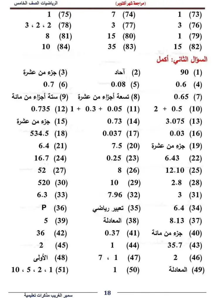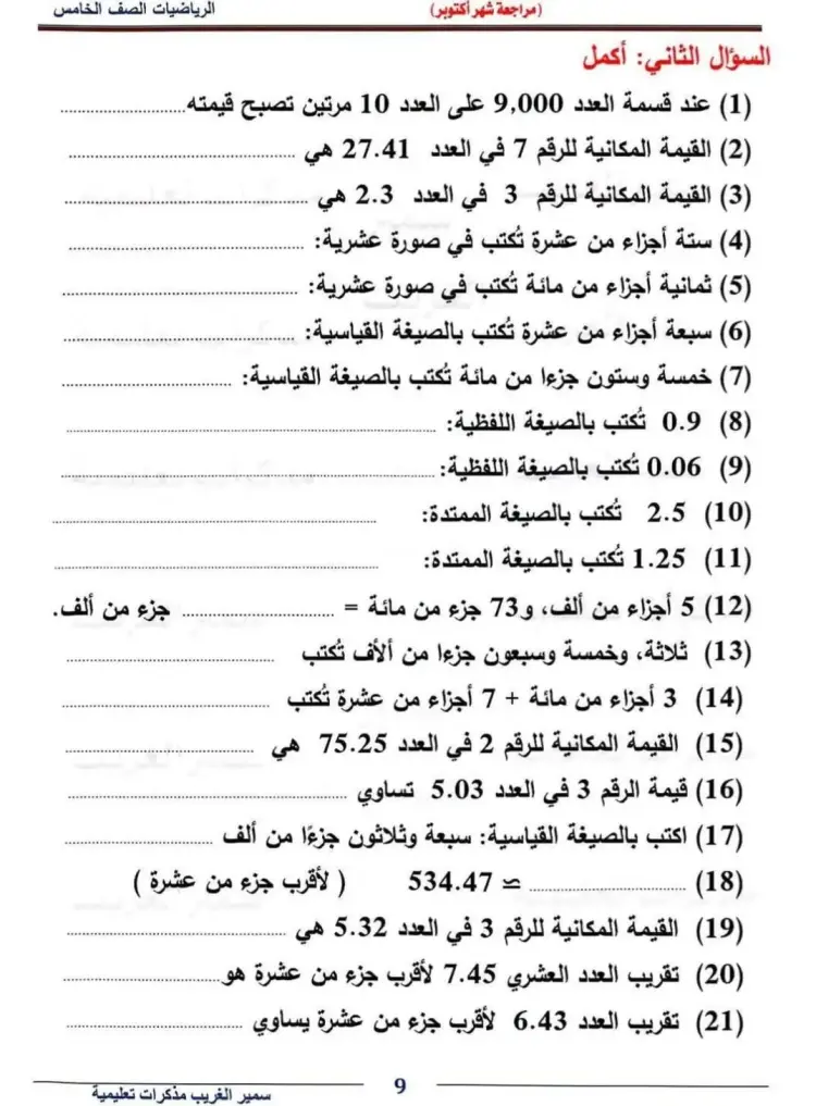 يمكنك التعرف على باقي أسئلة مراجعة رياضيات شهر أكتوبر الصف الخامس الابتدائي بالإجابات من خلال الصور التالية.
