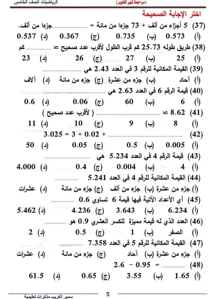 مراجعة شهر أكتوبر رياضيات خامسة ابتدائى 2025 2026