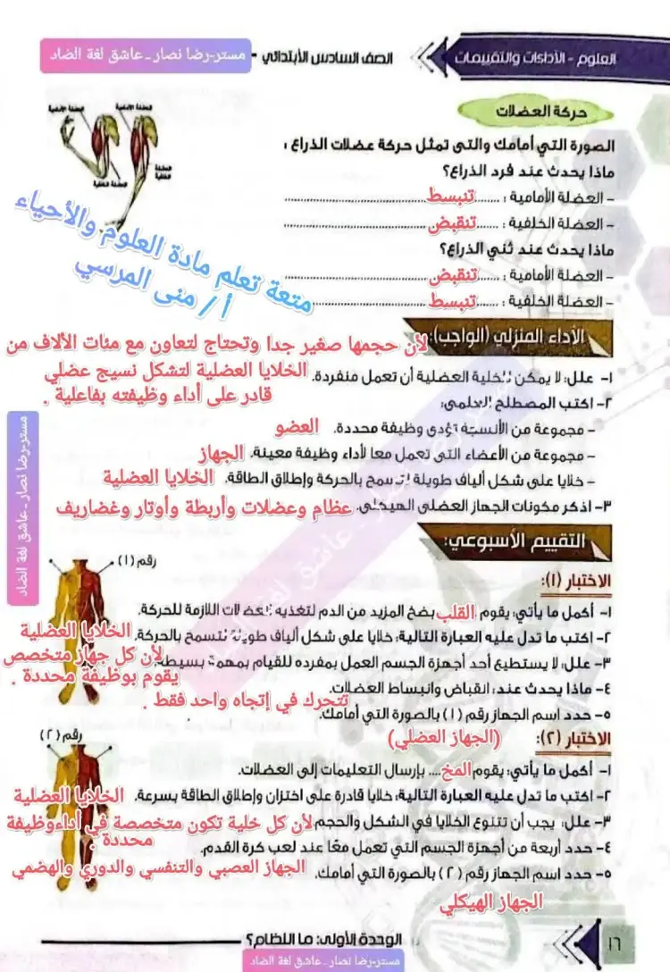 جاءت إجابات التقييم الأسبوعي الرابع علوم الصف السادس الابتدائي 2025 على النحو التالي: